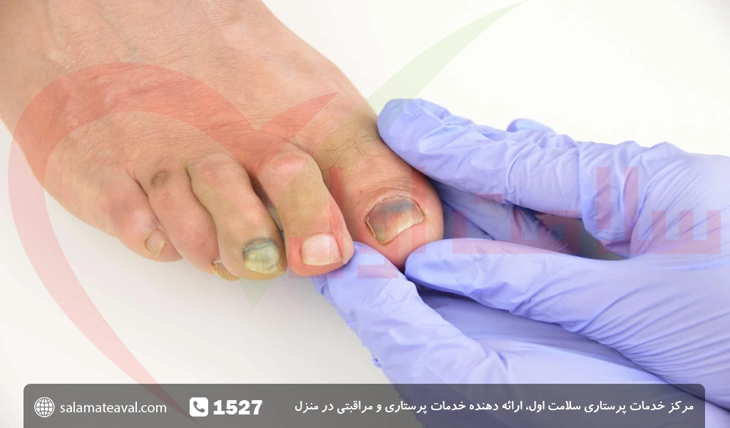 انحراف و تغییر رنگ ناخن پا علائم اصلی این عارضه و عفونت می باشد.