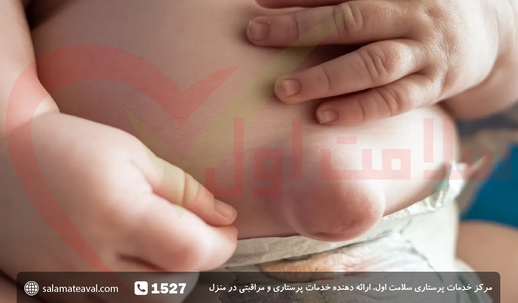 درزمان بارداری، بند ناف از طریق یک سوراخ کوچک به عضلات شکم کودک شما متصل می شود. این سوراخ پس از تولد کودک بسته می شود. در صورتی که این سوراخ بسته نشود و روده و مایعات از آن عبور کنند، باعث برجستگی یا تورم شکم می شود.