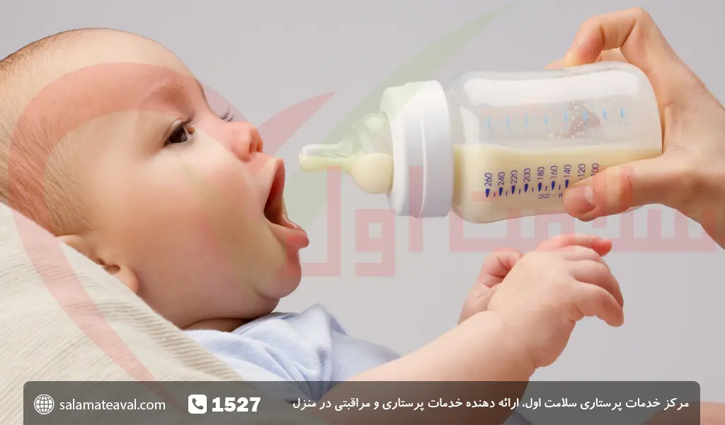 در حین شیر خشک دادن به کودک و به محض مشاهده ی نشانه های بالا، یک شیشه شیر به کودک بدهید. اگر این عمل را تا حد گریهی کودک به تاخیر بیندازید ممکن است باعث ناراحتی کودک بشوید و دادن شیر خشک را دشوار کند. غذا دادن به موقع به کودک سبب خواهد شد تا لحظات جذابتری با کودک داشته باشید و نگهداری کودک ساده تر گردد.