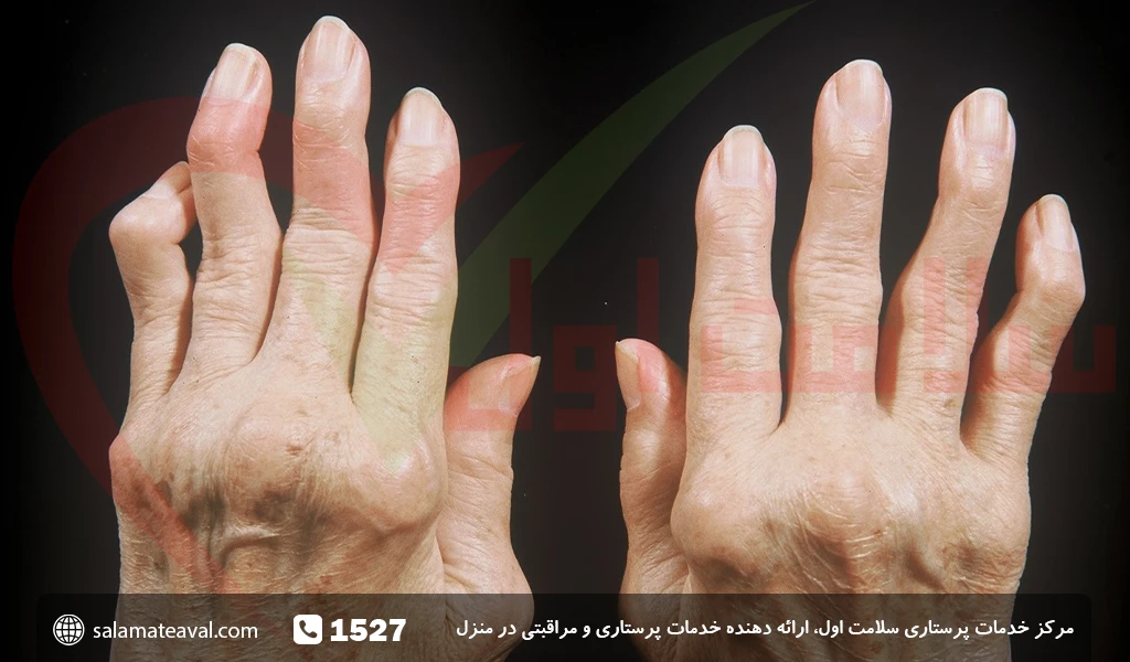التهاب رگها یا بیماری واسکولیت نوع دیگری از روماتیسم مفصلی است که طی آن تمام عروق بدن درگیر شده و دچار التهاب در دیواره عروق میشوند. این التهاب باعث کاهش جریان خون درون رگها میشود. علائم این بیماری ایجاد لک و زخم روی پوست و سرفه و تب است و طی آن بیشتر قسمتهای پوست و برخی از اندامها مانند کلیه، دستگاه گوارشی و ریه درگیر میشوند. این بیماری با درد مفاصل و خستگی همراه است. در این شرایط برای کمک به بیمار میتوانید از خدمات پرستار سالمند استفاده کنید. - آرتریت روماتوئید