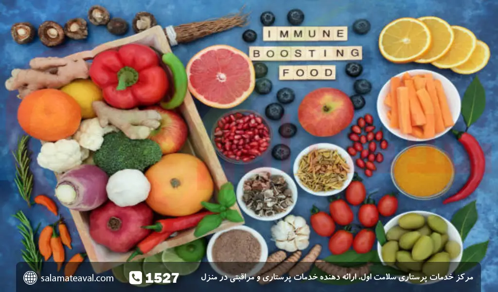 غذاهایی مانند مرکبات (ویتامین C)، سیر، زنجبیل، زردچوبه، سبزیجات برگدار و آجیلها میتوانند سیستم ایمنی بدن را تقویت کنند.