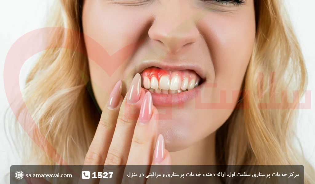 - قرمزی و ورم لثه در ناحیه آسیب دبده