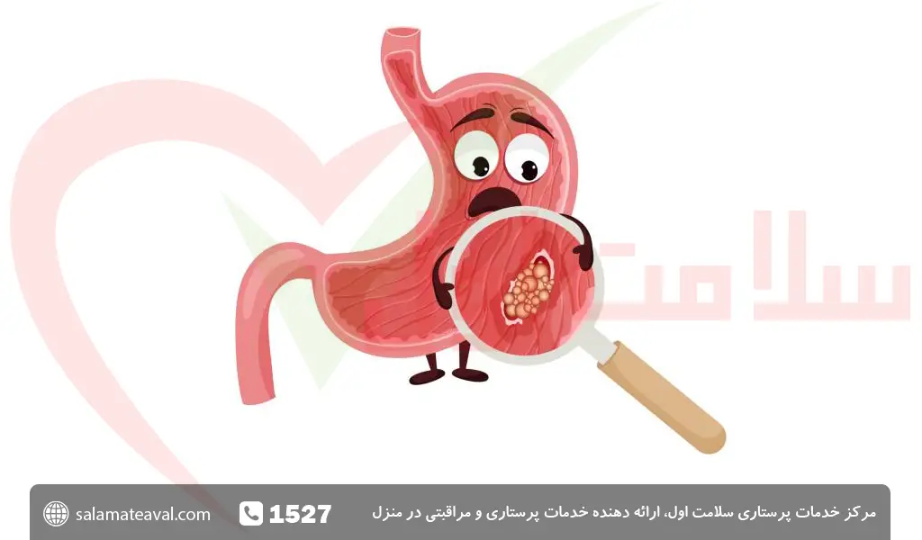 یکی از علل ایجاد زخم معده، باکتری هلیکوباکتر پیلوری بوده که در درون معده زندگی می‌نماید. با توجه به این‌که این باکتری می‌تواند باعث ایجاد عفونت در معده شود؛ بنابراین به راحتی می‌تواند کنترل سیستم ایمنی را انجام دهد. درصورتی‌که در بیماری عفونت حاصل از این باکتری بیش از حد معمول تکثیر گردد، بر روی مخاط معده اثر گذاشته و باعث ایجاد التهاباتی در معده و در نتیجه زخم معده می‌گردد. پرستار در منزل، می‌تواند با کمک نمودن به بیمار شما با استفاده از تجربیات خود، باعث شود که فرد کیفیت زندگی خود را افزایش دهد.